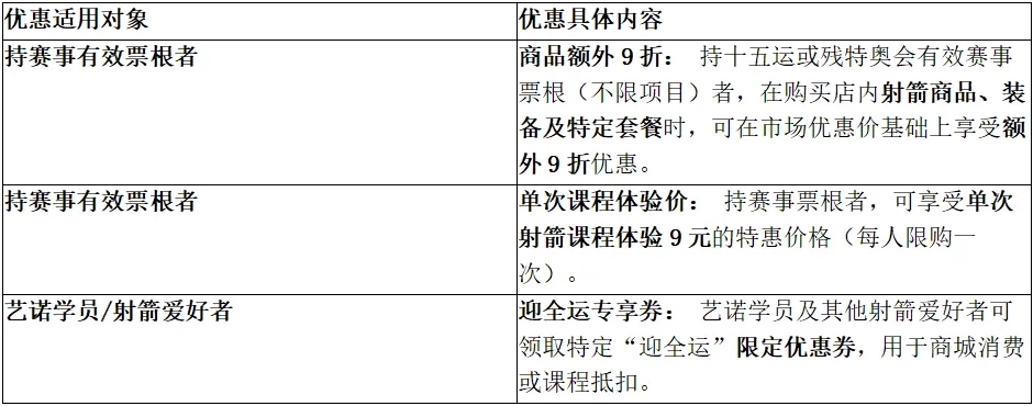 活动对象:所有艺诺体育在籍学员、射箭爱好者以及持十五运会/残特奥会有效票根的少年儿童人员。